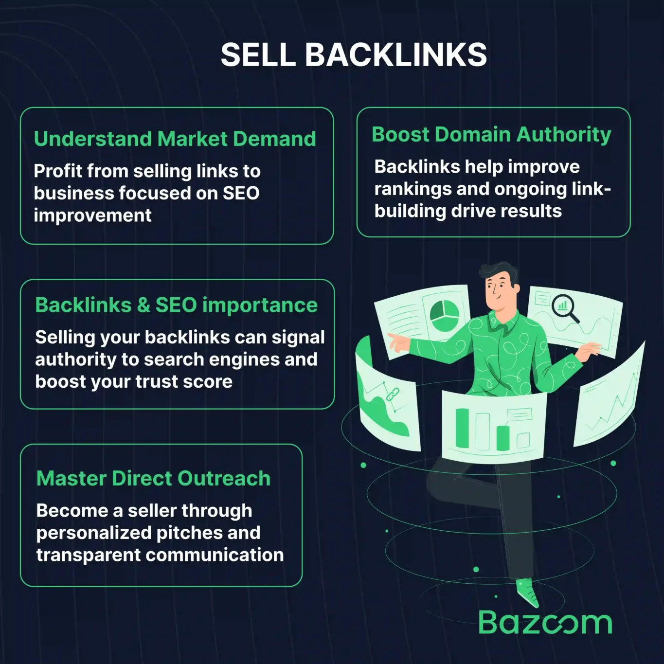 If you sell your backlinks responsibly, you’re essentially giving buyers access to authority they can’t easily build themselves. Our Bazoom platform can make this process easier by ethically connecting website owners with businesses looking for link placements. This allows you to sell links ethically.